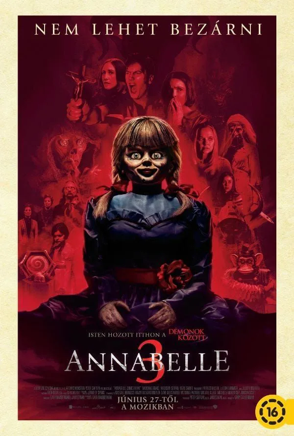 Ed és Lorraine Warren (Patrick Wilson, Vera Farmiga) meg akarja szabadítani a világot az elátkozott babában bujkáló, minden gazdájára halált hozó démontól, és megkeresi számára a legbiztonságosabb helyet. Ami sajnos a saját házuk pincéjében, az eddigi munkájuk során összegyűjtött tárgyak között, megszentelt üveg mögé zárva van. Ám a babában bujkáló pusztító szellem erősebb, mint hitték volna.Annabelle nem tűri a rabságot. Feltámad, kiszabadul, és ártalmas erejével fellázítja az összes többi, a démon emlékét őrző tárgyat. És természetesen az ellen fordul, aki a leggyengébb: Warrenék kislánya ellen – aki az alvilági gonoszság gyilkos ereje ellen csak a bébiszitterénél kereshet menedéket. A Démonok között-univerzum első leágazása, az Annabelle, óriási siker volt: az immár több mint 1,5 milliárdos eredményt elért filmek legújabb darabja a régi stábbal, a régi szellemben, de újult erővel támad.