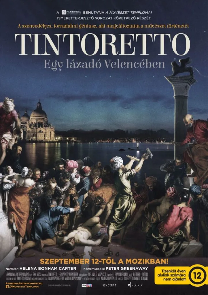 A művészet templomai ismeretterjesztő sorozat következő része az olasz reneszánsz utolsó nagy művésze előtt tiszteleg, születésének ötszázadik évfordulója alkalmából. A Tintoretto: Egy lázadó Velencében című film díszbemutatója szeptember 12-én 19:00 órakor lesz az Uránia Nemzeti Filmszínházban, ahol felvezető művészettörténeti előadást tart Bodor Kata művészettörténész, a Szépművészeti Múzeum kurátora. A neves filmrendező és művész, Peter Greenaway közreműködésével létrejött, látványos dokumentumfilm a 16. század legkiválóbb velencei művészei, Tintoretto, Tiziano és Veronese közötti rivalizálást mutatja be. Tintoretto életén és vásznain keresztül a nézők megismerhetik a korabeli várost, majd a narratíva előrehaladtával egyre jobban feltárul, milyen hatással volt a pusztító pestisjárvány Velence mindennapjaira és művészetére. A szakértői interjúkat a műkincsek részletgazdag közeli felvételeivel és rövid játékfilmes betétekkel színesítő film narrátora a kétszeres Oscar-jelölt Helena Bonham Carter.