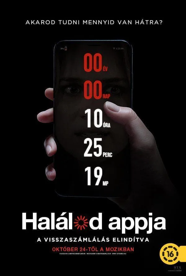 Akarod tudni, mennyid van hátra? Napjainkban szinte együtt élünk az okos telefonunkkal, appok követik nyomon a napirendünket, a fittségünket, a szerelmi életünket. Ha kijön egy új applikáció, arra mindenki egyből rákattan. De mi történik akkor, ha egy app azt is meg tudja mondani, mikor fogunk meghalni? Quinn (Elizabeth Lail) miután barátai unszolására letölti a népszerű Halálod appját, döbbenten látja, a telefonja kijelzője szerint már csak 2 napja van hátra. Miközben a visszaszámlálón peregnek a percek, és a rémült lány versenyt fut az idővel, hogy túlélje a számára kijelölt haláli határidőt, egy sötét alak is a nyomában liheg… De vajon Quinn ki tudja cselezni a végzetét? A web-sorozatokban járatos rendező, Justin Dec tökéletesen adagolja a feszültséget ebben a modern horror sztoriban, ami után kétszer is meggondolja magát a néző milyen új, őrült alkalmazás letöltésére kattintson rá. A visszaszámlálás elindítva…