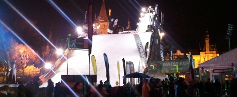 A rendezvényen amúgy elsődlegesen a téli sportok szerelmesei találják meg a számításukat napközben, hiszen a számos pavilonban megjelent cégek elsődlegesen ezt az igényt elégítik ki, illetve a rendezvények (pl. a pénteki látványos Snowboard-döntő) is az ehhez kapcsolódó sportágak köré csoportosulnak. De vannak itt kedvezményes osztrák és szlovák utazási ajénlatok is, természetesen elsődlegesen a téli szezonra. Aztán a területen szabad a műjégpálya használata (korit kölcsönözni is lehet), amit ha jól tudom, ebben a szezonban most lehetett először kipróbálni a felújítást követően, hiszen a hivatalos szezonkezdet csupán a rendezvény levonulását követően kezdődik el – még láthatóan az épületben is egy-két részen befejezetlen volt az infrastruktúra, vagy éppen a padlózat.