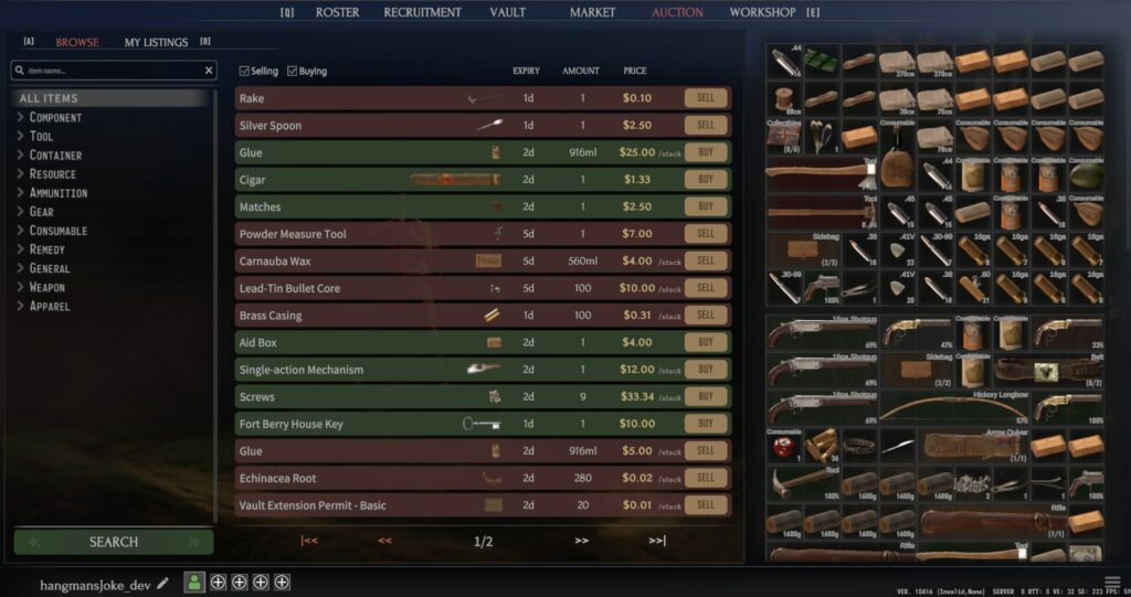 Szinte minden általunk összeszedett alapanyagot és felszedett, elkészített tárgyat hasznosíthatunk valahogy, ha máshogy nem, például eladhatjuk. Erre kétféle lehetőségünk is van: a játék menüjében elérhető árusok egyikével üzletelünk – minél többször tesszük ezt meg, annál jobb reputációnk lesz, és jobb üzleteket bonyolíthatunk le a későbbiekben –, vagy a játékosok számára készített aukciós részben kínálhatjuk portékánkat a többi játékosnak, illetve mi magunk is vásárolhatunk.