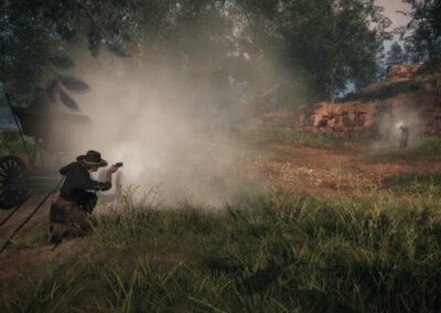 Megfontoltan és óvatosan érdemes tehát a játékban haladni, a lopakodás, fedezékhasználat és rejtőzködés mind megkerülhetetlen, ha sikeresek szeretnénk lenni. Nyílt konfrontációban ugyanis hamar olyan helyzetben találhatjuk magunkat, amiből nem biztos, hogy épp bőrrel kerülünk ki. Minden egyes lövésnek súlya van, minden golyó számít. A korszaknak megfelelően rövidebb hatótávolsággal és lassú töltésekkel számolhatunk a legtöbb esetben – főleg ha karakterünk negatív értékekkel van megverve, például istentelenül remegő kézzel… –, kritikus tehát, hogy hova és milyen messziről célzunk. Készüljünk fel, hogy rengetegszer vadnyugati filmekhez hasonlatos párbajokban kell remekelnünk, ahol egy lesből leadott támadás kincset érhet – csak ne ragadjon be a fegyverünk…