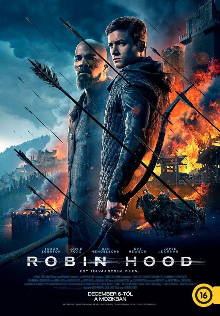 Felejts el mindent, amit a legendás tolvajról eddig hallottál. Azt hiszed, ismered őt, de nem is tévedhetnél nagyobbat. Robin of Loxley és egy mór harcos szilaj története ölt testet ebben a vakmerő és vagány históriában…A keresztes háború véres csatamezőin edződött nemes, Robin of Loxley (Taron Egerton) nem is sejti milyen kegyetlen és korrupt erővel kell szembenéznie, mikor visszatér angol földre, ahol a Notthingham-i seriff a szent háború égisze alatt teljesen kisemmizte alattvalóit. Robin és mór barátja, Little John (Jamie Foxx) az ártatlanok védelmében egy merész tervet eszel ki: ellopják a kincstár aranyát, és megdöntik a seriff uralmát. Robin kemény harcossá képezi ki magát John segítségével, majd álruhát ölt, és úgy fosztogatja a gazdagokat, és osztja szét az aranyat a szegények között. A népben remény ébred a titokzatos tolvaj láttán. De vajon a féktelen csuklyás nyilai elég gyorsak lesznek ahhoz, hogy egy hadseregnyi katonát legyőzzenek? Robin Hood legendája még csak most kezdődik… A nagyrészt Budapesten forgatott ROBIN HOOD címszereplőjét a Kingsman-filmek sztárja, Taron Egerton kelti életre, mesterét Jamie Foxx, szerelmét pedig Eve Hewson (Kémek hídja) játssza. A további szerepekben A szürke ötven árnyalatából Jamie Dornan, és a Zsivány egyesből Ben Mendelsohn is feltűnik.