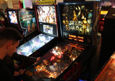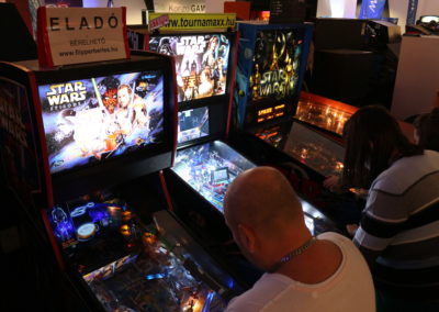 A rendezvény közvetlenségét mi sem jelzi jobban, mint hogy a főszervező Pálfi Balázs egész nap megtalálható volt a rendezvényház előtermében, ahol bárki kérdezhetett tőle a kiállított gépekkel, játékoslegendákkal, a Flippermúzeummal vagy saját játékgép-megszállottságával és elért rekordjaival kapcsolatban. Hogy milyen energiaitaltól bírta ilyen jól reggeltől éjfél utánig, azt nem tudom, de minden elismerésem az övé! 🙂