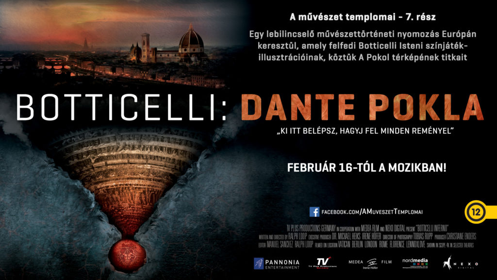 A művészet templomai sorozat talán nem ismeretlen a mozikba rendszeresen járók előtt. A legújabb, hazánkban február 16-án bemutatott epizódja ezúttal Dante poklába, illetve Botticelli világába kalauzolja el a nézőt, miközben olyan kérdésekre keresi a választ, mint hogy ki is volt Botticelli valójában? Honnan származott? Milyen körülmények vezettek odáig, hogy elkészülhetett Dante Isteni színjátékának az illusztrációja? Hogyan alakulhatott úgy az illusztrációk sorsa, hogy végül Franciaországban, Skóciában, illetve Németországban kötöttek ki? Milyen technikával alkotott Botticelli, és milyen rejtett motívumokra, utalásokra és üzenetekre bukkanhatunk az alkotásokat tanulmányozva?
