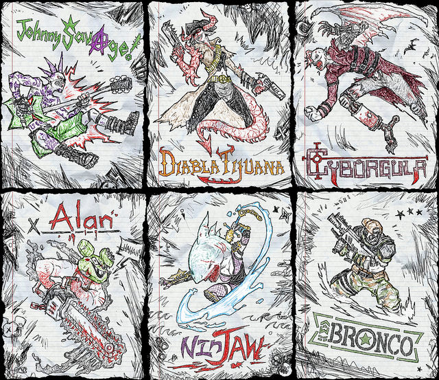 Kezdésnek hat karakter közül választhatunk, melyek mind kinézetre, mind képességeiket tekintve eltérnek, így teljesen egyedi játékstílust nyújtva. Ninjaw (egy szexis női alsótesttel és cápa felsőtesttel rendelkező, japánul vartyogó lény) például képes megcsáklyázni távoli pontokat, így pillanatok alatt eljuthatunk a térkép egyik végéből a másikba, ugyanakkor az ellenfeleket is helyhez tudja rögzíteni és nullázni a speciális képességeiket, ezzel kínos perceket okozva nekik, a nagy sebzést okozó cápa-viharról nem is beszélve. Alan (rémálmaink Teddy mackója, véres köpenyben, láncfűrésszel) ugyanakkor képes láthatatlanná válni és masszív sebzést kiosztani, az említett gyilokszerszámot akár el is hajítva a messzi távolba, plusz nagyobbat ugrik, mint a többiek és az életereje magától regenerálódik. Cyborgula (igen, jól gondolod, hogy ő egy cyborg-vámpír) ezzel szemben denevéreket idéz, nyomkövető-rakétákat indít útnak, repül és ami talán a legidegesítőbb: halálakor önmegsemmisül, így a közeli ellenfeleket is magával rántja a halálba, ezzel elvéve tőlük egy skalpot. A többiek, Johnny Savage, Bronco és Diabla Tijuana, hasonló egyediségnek örvendhetnek, így mindenki megtalálhatja a számára megfelelőt. Mindegyiküknek megvan a maga pozítiv illetve negatív oldala is, így érdemes ezeket is mérlegelni választáskor.