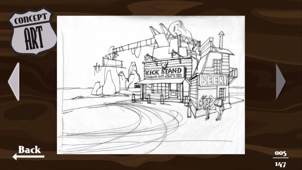 A zene mellett különböző concept artokat is feloldhatunk, amelyek a játék készítését mutatják be.