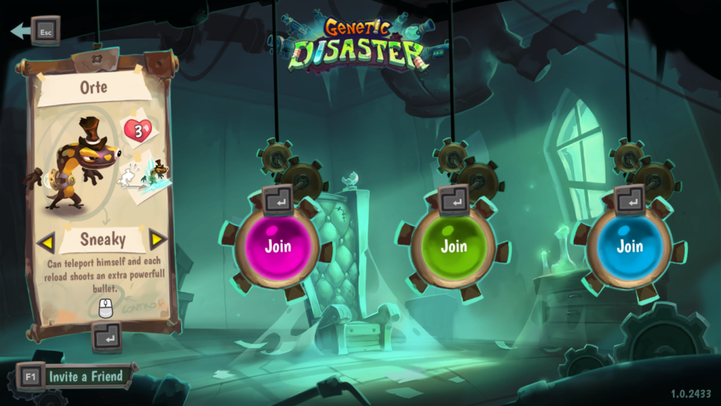 A Genetic Disaster is egy közülük. Több dolog is feltűnt, mikor nekiláttam a játéknak. Az első, hogy a kinézete nagyon jó és ötletes, letisztult és szépen megrajzolt. Az ellenfelek változatosak, és a pályák véletlenszerűen generáltak, így nem válnak unalmassá. Van, amikor jégtömbök zuhannak az égből, ezzel nehezítve a dolgunkat. Van, amikor több ellenfél jön a megszokottnál és még sok más is. Nem vagyok benne biztos, hogy mindegyikkel sikerült már találkoznom, pedig jó pár órát eltöltöttem a játékkal.