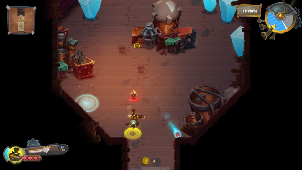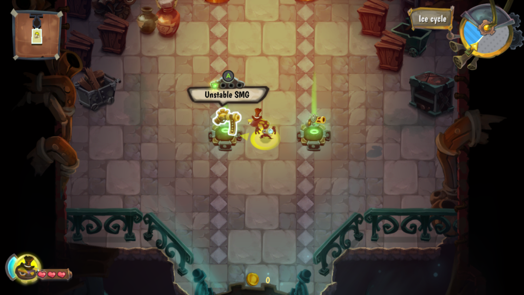 Nemcsak a pályák, de a használható fegyverek is véletlenszerűen jelennek meg, a pályák elején, majd az adott termekben, az összegyűjtött érmékből pedig vásárolhatunk szintén véletlenszerű további fegyvereket vagy életet.