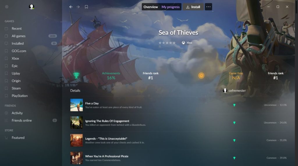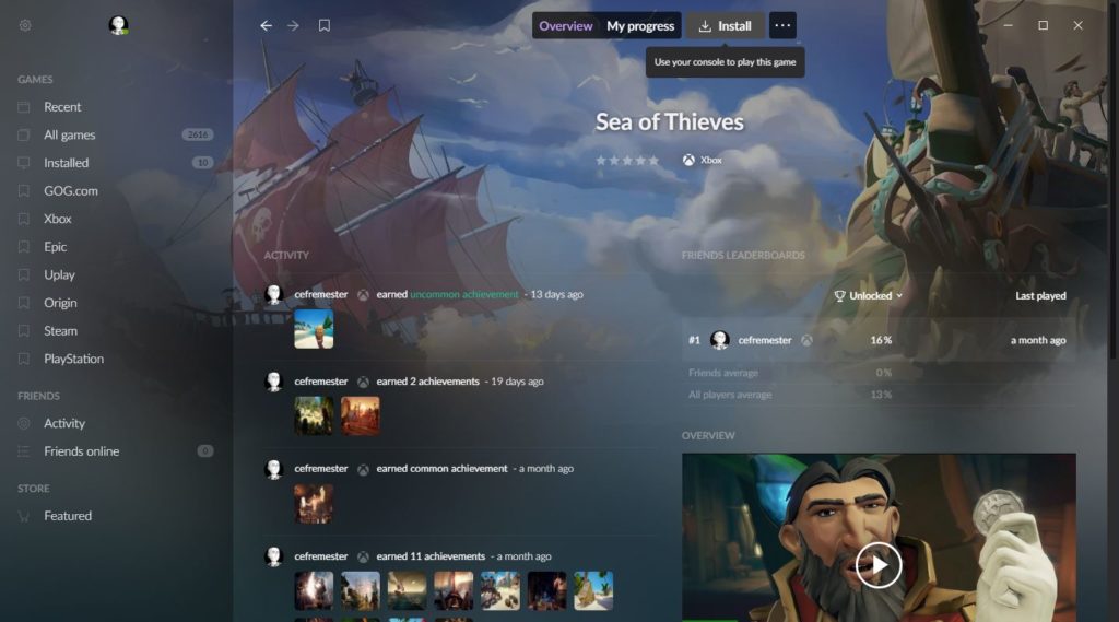 Az egyes játékok oldalát meglátogatva egy idővonal formájában összefoglalót kapunk az általunk elért achievementekről, a barátaink teljesítményéről, és feltelepíthetjük vagy elindíthatjuk az aktuális játékot. Ezen felül van egy részletesebb áttekintés, ami megmutatja melyik achievement pontosan micsoda, mennyire ritka; barátaink közt hányadik helyen állunk a játék kimaxolásában; hány óránk van a játékban (habár ezt nem minden platform adja még ki jelenleg).