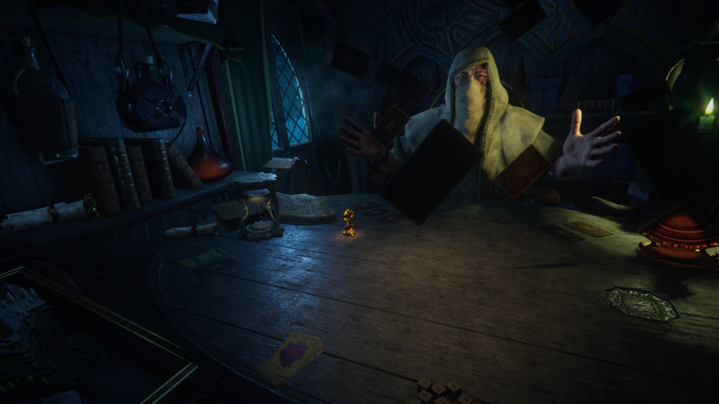 Ha mindez nem lenne elég ahhoz, hogy lenyűgözzön minket, akkor kapunk egy társat is magunk mellé, aki segít nekünk nem csak a csatákban, de a pályákon való átjutásban is. Saját képességekkel rendelkezik, s ugyan csak egy jöhet velünk egyszerre, ám számos barát van, aki támogathat minket utunkon, így minden küldetés megkezdése előtt választhatunk, hogy ki jöjjön velünk. A sima már korábban említett „itt a piros, hol a piros” játékstílus kockázatos döntéseknél természetesen a játék része maradt, ám a fejlesztők a Defiant Developmentnél úgy gondolták, hogy lehet ez még izgalmasabb is, így kaptunk pár új módot is. Lett egy szerencsekerekünk, melyet gombnyomásra megállíthatunk és remélhetjük, hogy ott áll meg ahol mi szeretnénk. Kaptunk egy kockavetés módot, ahol már kitalálhattátok, bizony nagyobbat kell dobnunk, mint amit az osztó kiszab nekünk. Ehhez három dobókockával kétszer dobhatunk úgy, hogy van lehetőségünk megtartani azt vagy azokat a kockákat melyeket elég nagynak gondolunk. Ezek tökéletesen illeszkednek a Hand of Fate világába és ugyan nem hiányoztak az első részből, mostanra már nem értem, hogy működhetett nélkülük.