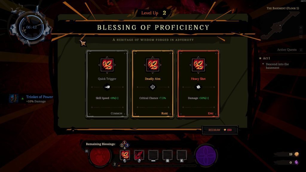 De a harangok értünk szólnak. Vagyis az az 1, amit nem sokkal a bevezető után megtalálunk és oooh jaj na itt jövünk rá, hogy ez nem 2 perc lesz, jó roguelike-hoz méltóan itt a tisztessége META progresszió, inkrementális fejlesztések minden egyes nyert, vagy elbukott próbálkozás után, karakterünk közel minden statisztikáját fejleszthetjük, persze csak szépen lassan, idővel kinyitva teljesen új lehetőségeket és játék mechanikákat. Ugye nem csak én vagyok ilyen boldog, hogy 2025-be is készül ilyen játék és az nem egy P2W Gotcha kínából?