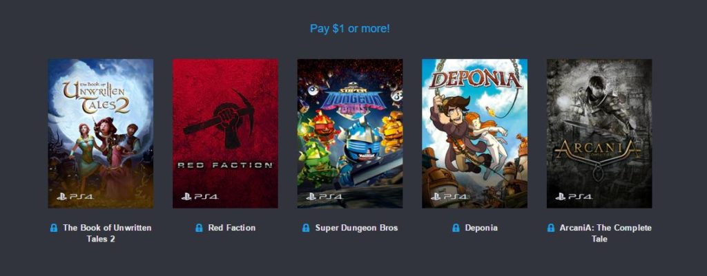 Ha ez nem szegte kedveteket, akkor már a minimális, 1 dolláros összegért is kaphattok jó játékokat, köztük a kultikus Red Faction-t, a Deponia első részét, vagy az alapjátékot és a kiegészítőt is magába foglaló Arcania: The Complete Tale-t.