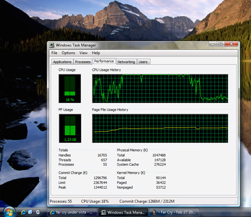 A srácok egy Athlon 4000+-os processzorral, 2 GB memóriával és GeForce 7800 GTX videókártyával ellátott gépre pakolták fel az új Windows, ami a jövő év elején érkezik majd meg. Ezt követően a Far Cry-t szerették volna elindítani a gépen, de megdöbbenésükre ehhez 1.23 gigabájtos fájl generálására volt szükség.