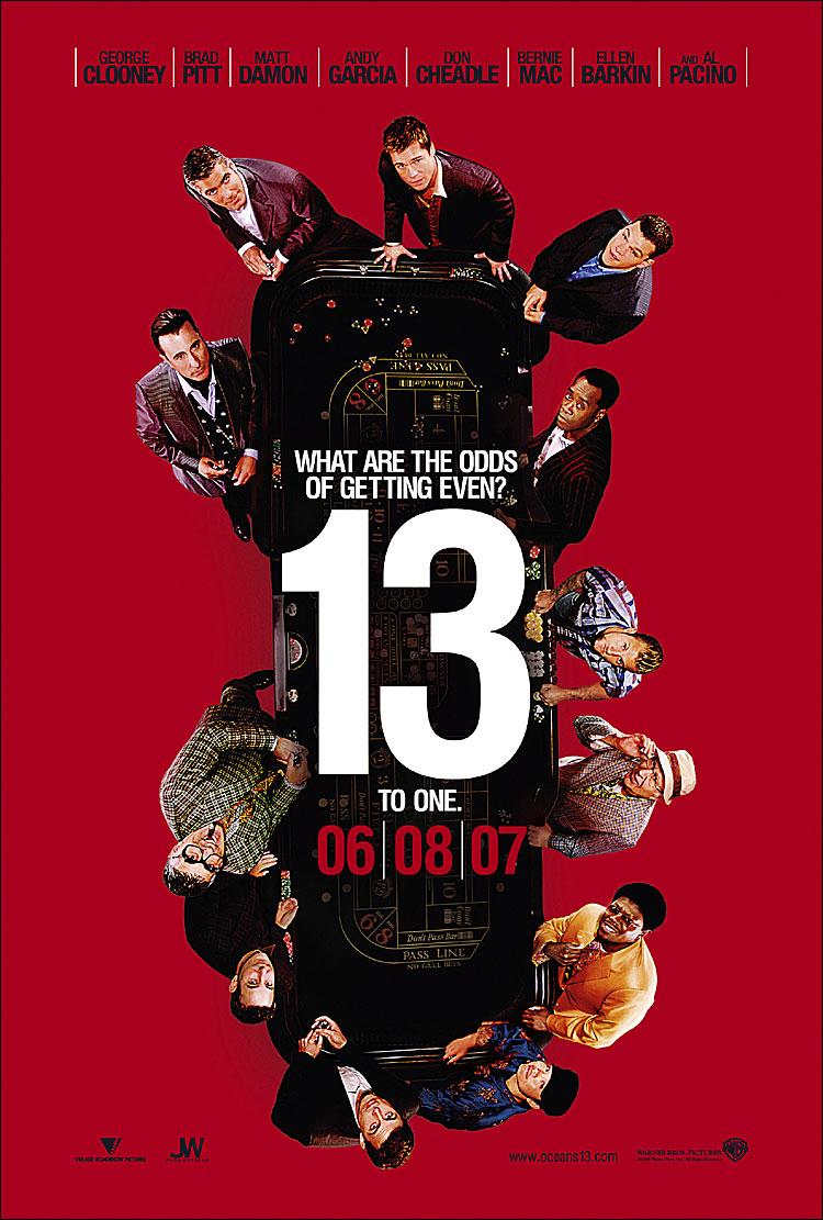Ocean’s Thirteen: A híres csapata újra összeáll, hogy egy újabb fergeteges rablást valósítson meg. A régi társulatból szinte mindenki megmaradt, kivéve a banda hölgy tagjait, ugyanis Julia Roberts és Catherine Zeta-Jones biztosan nem tér vissza. Őket az Emmy-díjas színésznő, Ellen Barkin helyettesíti majd. A most megkaparintott videó mellé egy vadonatúj plakát is társult.