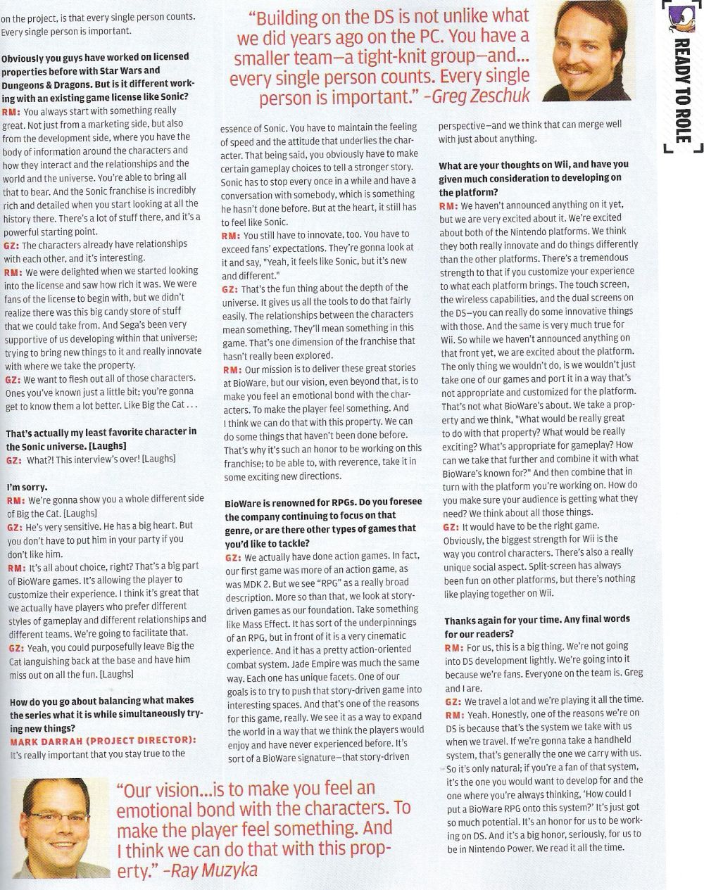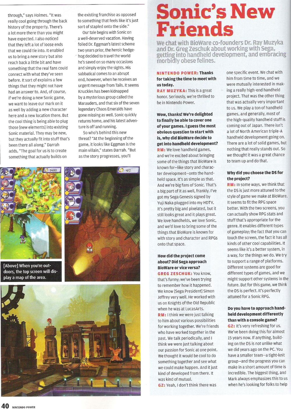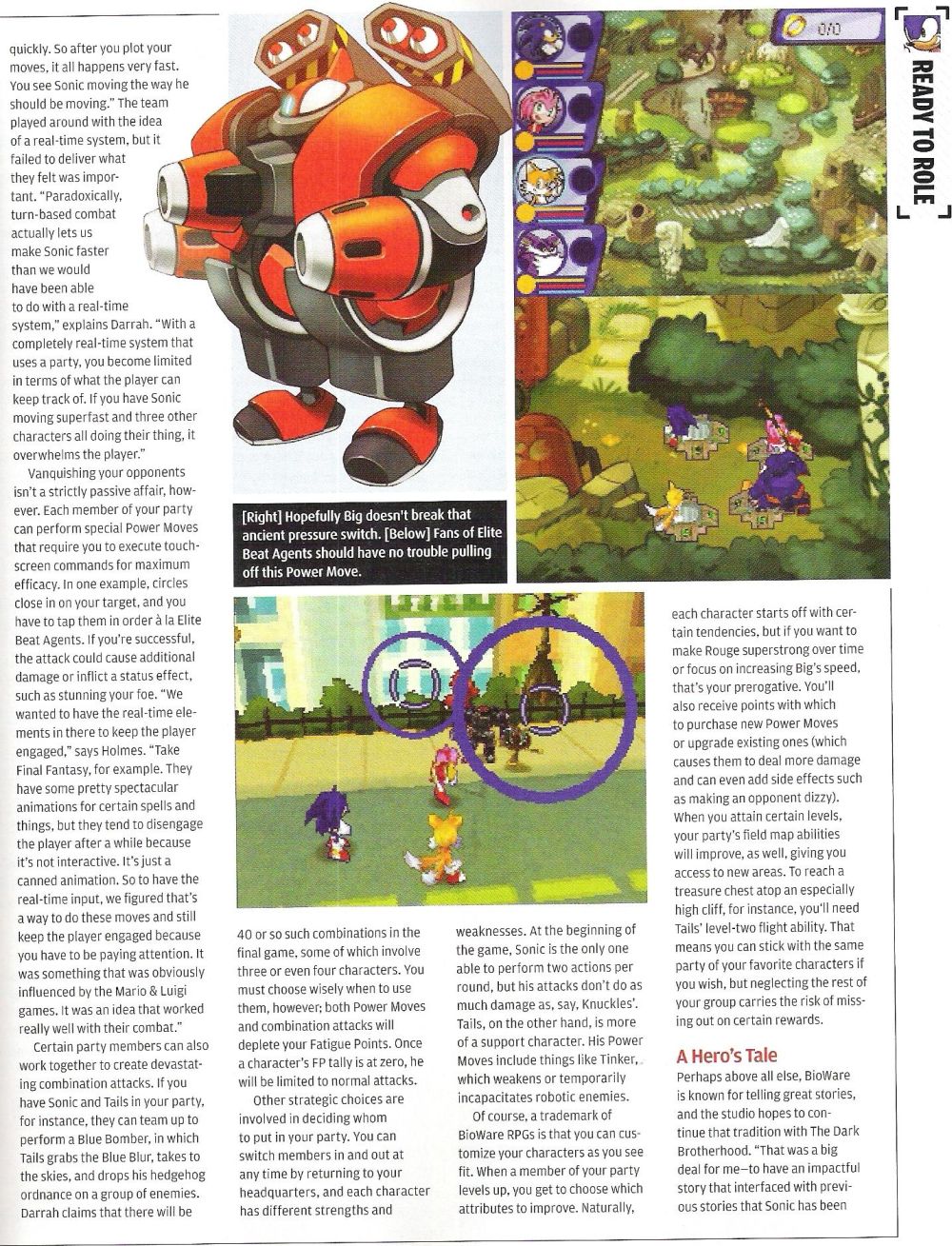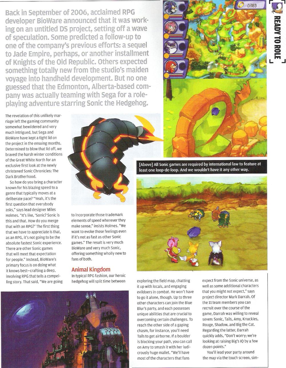 A BioWare legújabb munkáját, a Sonic Chronicles: The Dark Brotherhoodot a Nintendo Power magazin szerkesztői leplezték le hivatalosan. A munkálatok korábban Sonic RPG néven futottak, azonban a magazin legfrissebb száma végre hivatalos, konkrét információkkal állt elő.