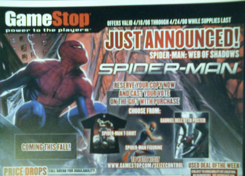 A Gamestop egyik plakátja szerint az Activision a jövő héten jelenti be a Pókember franchise legújab tagját, a Web of Shadowst. A  reklámanyagról egyelőre ennél bővebb információ nem derült ki, így nem ismertek a platformok és a megjelenési időpont se, azonban nem lenne meglepő az új rész érkezése, hiszen az Activison egyik fejős tehenéről van szó.