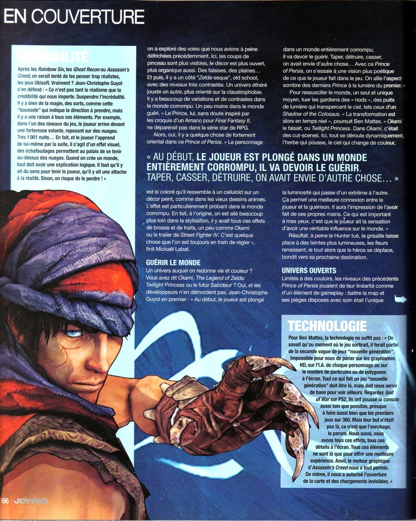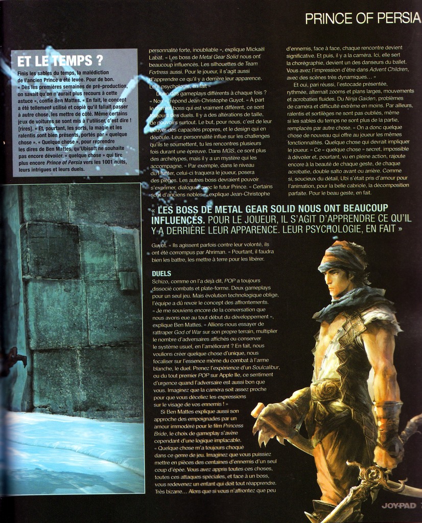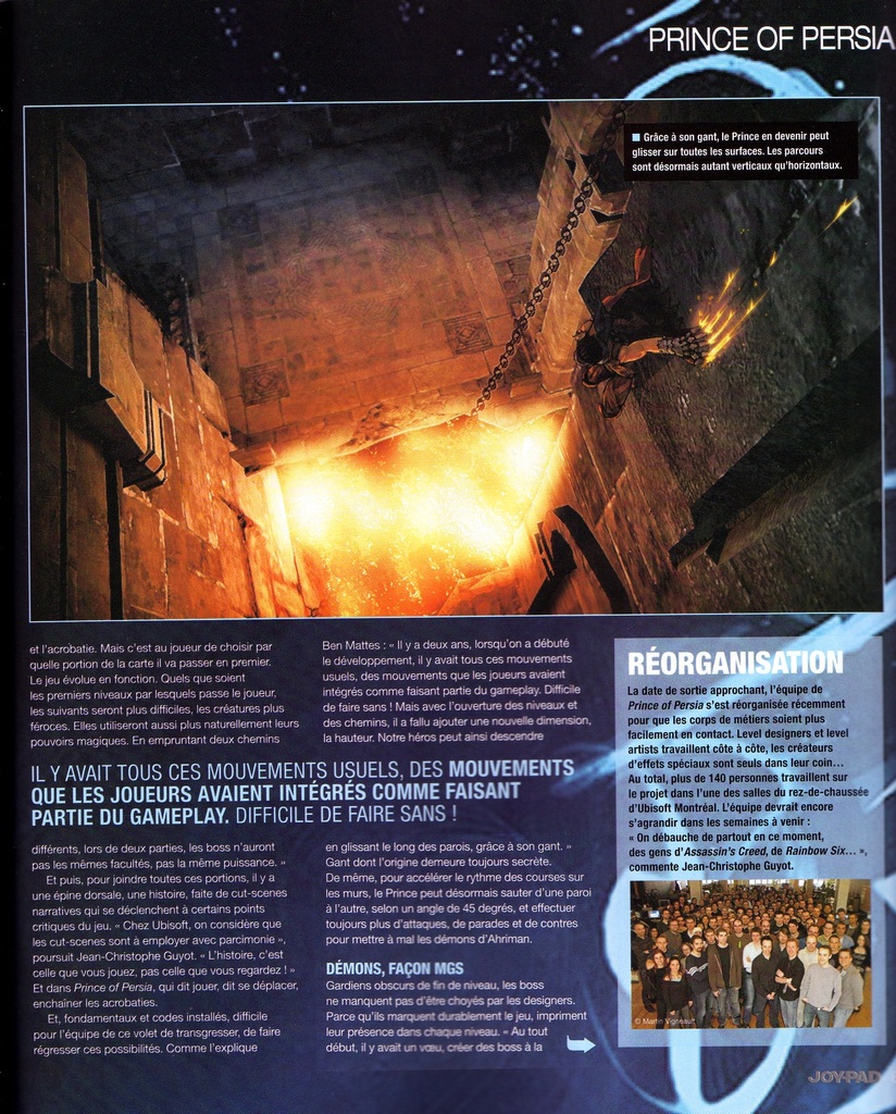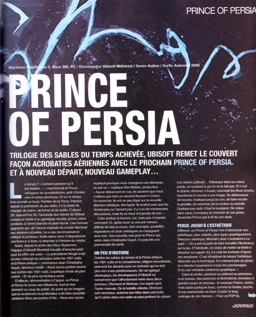 Tegnap Wolf kolléga jelentette, hogy a francia UbiSoft hivatalosan is leleplezte a legújabb Prince of Persia-t. Az akkor leközölt információfoszlányokból nem sok érdekességre derült fény, azonban ma felkerült a világhálóra a francia Joypad magazin több oldalas előzetese, melyből rengeteg érdekességet tudhattunk meg a készülő akció-kalandjátékról.