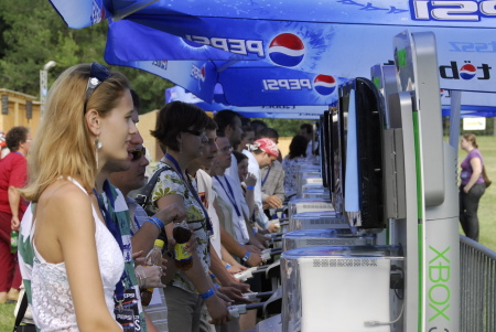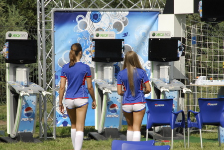 Szép lányok, jó hangulat, egy remekbe szabott meccs az óriási kivetítőkön és persze X360 konzolok és PES 2008 minden mennyiségben.A Microsoft meghívásában érkeztünk az Orczy-kertbe az EB-döntő napján, ahol nem csupán egy nagy rét fogadott bennünket óriási kivetítővel, de számos kajálda, egy igazi dzsembori, jó hangulat, X360 konzolok és hűtött italok vártak a Pepsi szervezésében. Mielőtt még a meccset kezdtük volna nézni, vasárnap délután még több X360 konzolt is kiosztottak játékokkal (stílszerűen a Pro Evolution Soccer 2008 futott minden gépen és az ajándékok között is ez volt az egyik játék).