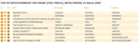 Újabb hét telt el és a Resident Evil 5 még mindig vezeti az Egyesült Királyság eladási mutatóit. A lista hátsó részében se nagyon változott az állás az egy héttel ezelőttihez képest.