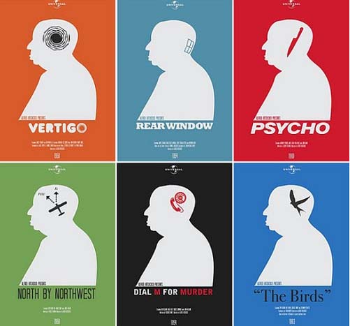 Az 1899-ben, Londonban született Alfred Hitchcock 1922-ben kezdett el filmeket készíteni, akkor még kizárólag némafilmeket. Az első hangosfilmjére egészen 1929-ig várni kellett, de utána 1976-ig közel 50 filmet rendezett, melyek közül a legismertebbek, a Madarak és a Psycho 1963-ban és 1960-ban készütek el. A rendezőzseni műveit ma is nagy tisztelet övezi, hatalmas rajongótáborral bír Hitchcock és munkássága, így az egyik lelkes amatőr rajongó egy kis Photoshop bevetése után elkészítette a rendező főbb filmjei plakátjainak modernizált verzióját. Íme: