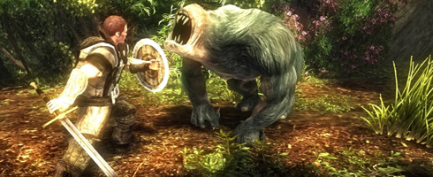 Korábban szóba kerültek a fegyverek, itt az ideje, hogy kitérjek a harcrendszerre is. Ehhez azonban ismét elő kell vennem a Gothic II-t, mint összehasonlítási alapot: az előd harcrendszerének egyik legfontosabb sajátossága az volt, hogy nagyon sok tanulást igényelt: egy kezdő játékos számára idegesítőnek és használhatatlannak tűnt, viszont amint belejöttünk, a korábbi hátrányai mind előnnyé alakultak és a segítségével olyan harcokból is győztesen jöhettünk ki, amelyekben ránézésre semmi esélyünk nem volt az életben maradásra. A Piranha Bytes láthatóan úgy döntött, hogy nem éri meg emiatt elrettenteni a kezdő játékosokat és egy olyan rendszert alakítottak ki, amely kezdők számára sokkal egyszerűbben elsajátítható (bal egérgomb támad, jobb védekezik, iránygomb+ugrás kitér a támadás elől). Ezzel nem is lenne gond, de sajnos bejáratott dolgokat újra cserélni azzal jár, hogy új hibák bukkannak fel, ami itt abban nyilvánul meg, hogy a bot a kardokhoz és fejszékhez képest sokkal használhatatlanabb lett. Az ellenfelek ugyanis magasan és alacsonyan is támadhatnak, és fegyverrel csak felső támadást lehet hárítani, míg a pajzs mindkét irányból véd. Pajzsot viszont csak karddal vagy fejszével használhatunk, ezeket tudjuk egy kézben fogni (a fejszéket csak néhány fejlesztés után), így bottal korlátozottabbak a lehetőségeink: egy kisebb farkas hordát karddal és pajzzsal már alacsonyabb szinten is elintézhetünk, de ha bottal vágunk bele, szinte semmi esélyünk sincs.
