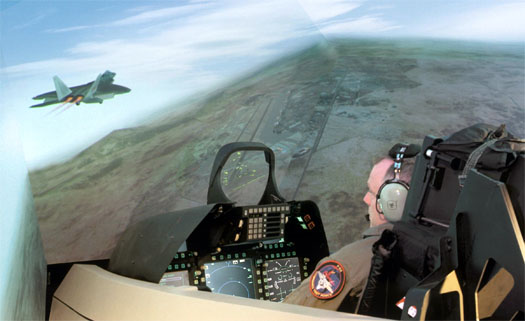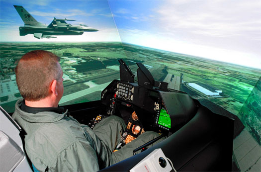 Link Simusphere néven futó projektet az L-3 Link hozta tető alá, mégpedig 15 millió dollárból. A program egy szuperrealisztikus nagyfelbontású F-16 szimulátor, amit igencsak masszív gépek hajtanak meg.