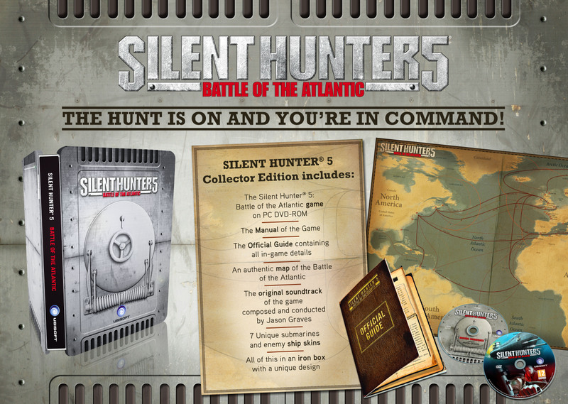 A tengeralattjáró-szimulátor hívek a március negyedikén, kizárólag PC-re érkező Silent Hunter V: Battle Of The Atlantic fapados verziója mellett egy igazán pofás külsővel és belbeccsel felvértezett gyűjtői kiadványt is beszerezhetnek majd. A speciális kiadvány tartalmazni fog egy részletes útmutatót, egy térképet, a játék teljes zenei anyagát és rengeteg külön beszerezhető in-game tartalmat. Mindezt egy gyönyörű fémdobozba pakolja majd a UbiSoft.
