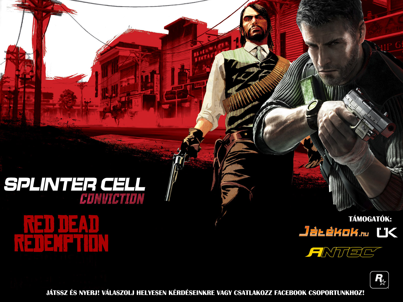 Legújabb, május közepéig tartó akciónkban ismét több sorsolásra váró nyereménnyel tudunk szolgálni, ezúttal ugyanis gazdára talál a május egyik legjobban várt játéka, a Rockstar vadnyugati lövöldéje, a Red Dead Redemption, illetve három PC-s és három X360-as, exkluzív Splinter Cell: Convivtion előrendelési csomag, ami számos extrát rejt magában. Előbbit az ÜberKonzol ajánlotta fel, a szerencsés nyertes pedig választhat, hogy X360-ra vagy PS3-ra szeretné-e megkapni nyereményét. A Splinter Cell előrendelési csomagokat a játék hazai forgalmazója, az AN-TEC Kft. ajánlotta fel. A csomag magában rejt egy igényes Splinter Cell képregényt, egy minden földi jóval megtöltött "Making of DVD-t", illetve egy extra redeem kódot, ami egy spéci puskához nyitja meg a kapukat.