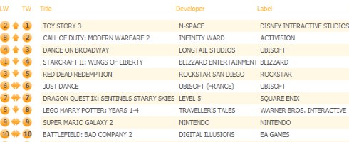 Ismét tarolt Woody, Buzz Lightyear és népes kompániájuk kalandjainak legfrissebb megjátékosítása, amely a második helyről kúszott vissza a dobogó legfelső fokára, a StarCraft II-t váltva ezzel a top pozícióban. Még nagyobb bravúrt tudhatott magáénak a Call Of Duty: Modern Warfare 2, az Activision first person lövöldéje ugyanis a nyolcadik helyről vett rakétastartot és röppent egy hét leforgása alatt a második helyre. A StarCraft II mellett a Red Dead Redemption is lefelé tartott a népszerűségi indexen, két helyet araszolt hátrafelé a Rockstar westernes anyaga, így most már csak az ötödik lehet a sorban. Újonnan megjelenő cím nem volt a sorban, csak korábbi anyagokból állt össze az aktuális, legjobb tízes. A Chart-Track eladási listája következik.
