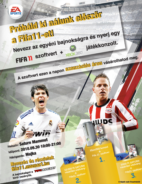 Először próbálhatják ki az EA SPORTS FIFA 11 szenzációs újdonságait, akik szeptember 30-án a Mammut II-ben lévő Saturn üzletet választják.