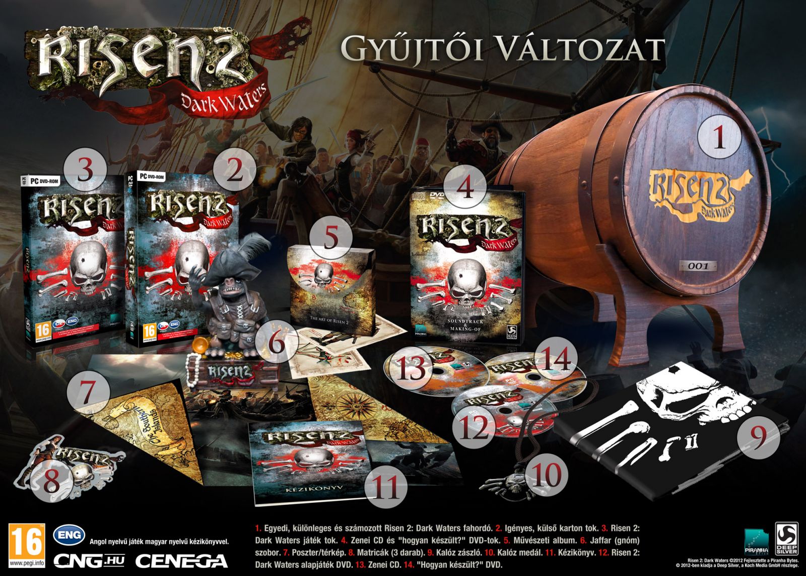 A Risen 2: Dark Waters PC Gyűjtői Változatát csak az 576 (Comgame) és CD Galaxis üzletekben lehet előrendelni, NAGYON limitált darabszámban.