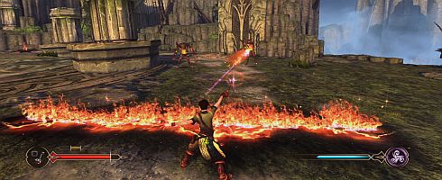 Pedig a Sorcery-ben megvannak a lehetőségek, a Föld elemeit bevető varázslatok kombinálhatóak, így például ha megidézünk egy tornádót, majd a tűz varázslattal kombináljuk, akkor égő szélviharral tizedelhetjük meg az ellenséget. Egy másik esetben pedig bevethetjük a fagyasztótámadást, amivel lelassíthatjuk a különös teremtményeket, hogy aztán az alaptámadással végleg végezzünk velük. Sajnos a varázslatok közötti egyensúly nem tökéletes, így például a villámcsapást elég sokszor fogjuk használni, míg a föld-alapú támadást a játék jelentős részében nem, vagy alig fogjuk segítségül hívni.