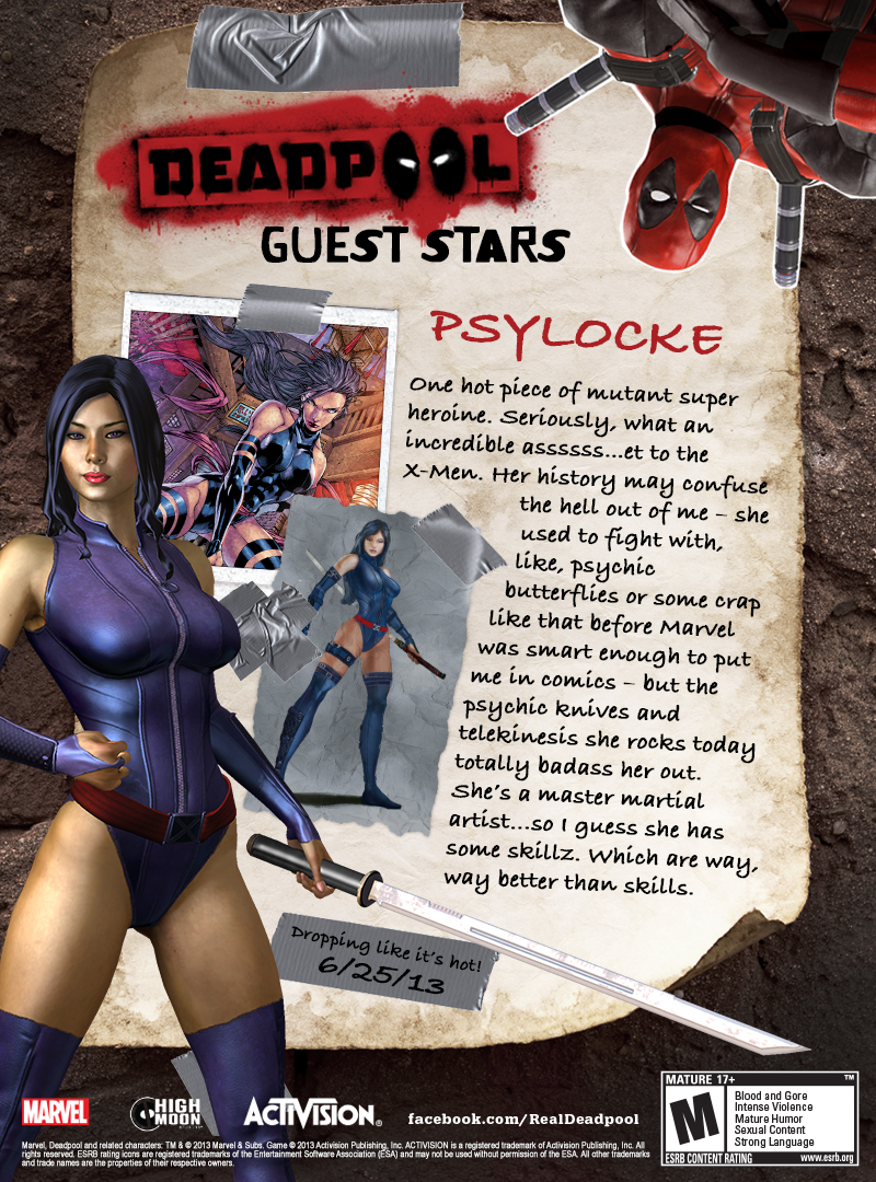 A High Moon Studios két közzé tett karakterleírással erősítette meg, hogy a júniusban boltokba kerülő Deadpool videojátékban a biztosan felbukkan majd Mister Sinister és Psylocke is.