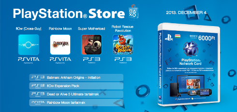 Az áruházba a héten megérkezett a cross-buy támogatással ellátott flOw, amely a következő generációs konzolon és PS Vitán egyaránt játszható, valamint az ingyenesen letölthető belsőnézetes akciójáték, a Blacklight: Retribution.