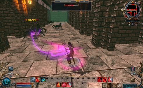 Itt érdemes megjegyezni, hogy bár már a Minotaurusz király erődjénél is érezhető volt, a Pókkazamatába merészkedve azonban már szó szerint szembetűnő, hogy a fejlődési rendszer sajnos zavaró mértékben lelassult. Noha az egyes küldetések elég sok tapasztalati pontot adnak, azonban az üresjáratok alatt – például a 144. és a 149. szint között egyetlen feladat sincs – csak a kaszabolással juthatunk előre. Egy újabb szint eléréséhez azonban – még úgy is, hogy folyamatosan a rendelkezésünkre áll az életerőt regeneráló varázsital –, akár 45–60 percre is szükségünk lehet, holott ez a mennyiség tapasztalataim szerint a korábbi szinteken ennek a fele is alig volt. Hogy miért nyújtották el ennyire a fejlődési rendszert az alkotók, azt nem tudni, azonban egy kicsit talán érdemes lenne újragondolniuk a rendszert, hiszen a pálya nem kínál annyi felfedezni valót, sem annyi érdekességet, hogy tulajdonképpen órákat töltsünk el szimpla kaszabolással. Sajnos még ellenfelekből sem jutott olyan változatosság, mint a többi helyszínre – ez a méretekből kifolyólag részben érthető –, hiszen mindössze négyféle pókfajjal mérhetjük össze tudásunkat, így név szerint Mutáns ollós pókkal, Sárga villás farkú pókkal, Mutáns szablyás pókkal és Buzogányfarkú pókkal.