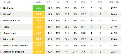Előrébb kerültek a listán, pedig a tavalyi évhez képest az értékelések valamelyest romlottak. Ez főleg a kézikonzolos címeknek tudható be, és a Vitára kiadott 20 játékból mindössze 5 tudott pozitív kritikákat felmutatni.