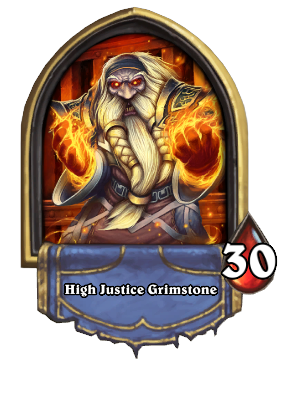 Második csatánk a Dark Iron Arena, ahol High Justice Grimstone lesz az ellenfelünk. Képessége, hogy egy manáért leidéz egy 1-1-es Dark Iron Spectatort, ami taunttal rendelkezik. Heroic módban manaszükséglet nélkül tudja leidézni őket, ezért fontos, hogy legyen olyan kártya a paklinkban, ami könnyen ki tud iktatni egy 1 HP-s lapot.