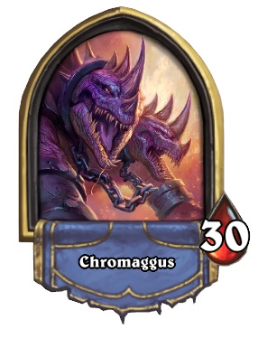 Ha sikersen legyőztük mind a 4 bosst, akkor egy legendary Chromaggus lapot kapunk, ami 6/8-as és 8 manába kerül. Képessége, hogy minden felhúzott lap mellé kapunk még egy másolatot a kezünkbe.