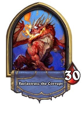Második ellenfelünk Vaelastrasz the Corrupt. Az ő hősképessége mindkét módban 0 manába kerül és auto-castos. Normál módban 2 lapot húz mindkét karakter, heroicon 3-at és Vaelastrasz kap egy mana kristályt. Van egy bosszantó speciális kártyája is, a Burning Adrenaline, amit mana igény nélkül tud bejátszani és 2 sebzést visz be az ellenséges hősbe (ez mindig a legrosszabbkor érkezik). Ehhez a csatához érdemes olyan lapokat megjátszani, amik a kezünkben lévő kártyák száma alapján bónusszal rendelkeznek (például a Twilight Drake, ami 1 életet kap minden kezünkben lévő kártya után).