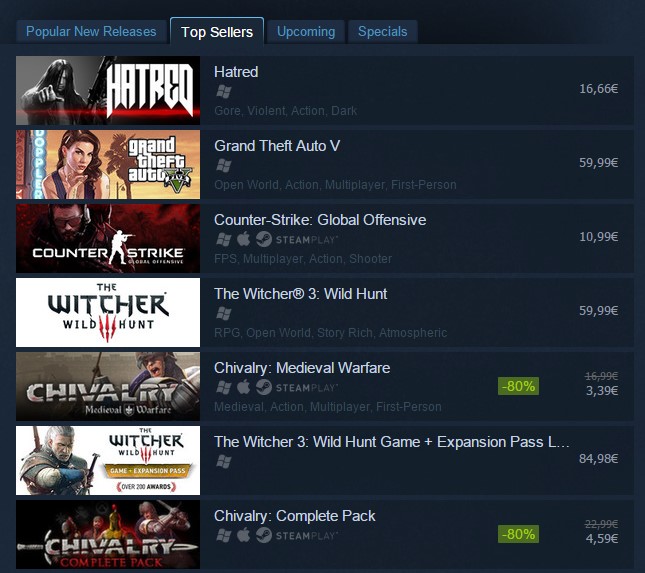 Még csak egy nap telt el, de máris az eladási lista elején szerepel. A sok elutasító hangnemű iromány ellenére a játékosok mégis kedvelik.