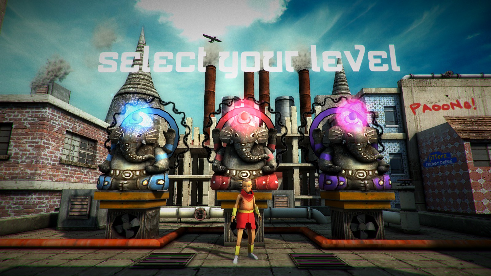Az egész játéknak lényegében semmi története nincs, vagy ha van, akkor én nem találkoztam vele. Összesen 3 pályából áll a játék, amit egy fura pályaválasztó keretében tudunk kiválasztani. Három világító szobor közül az egyiket kell lényegében megfejeljük, és akkor mehetünk az adott pályára.