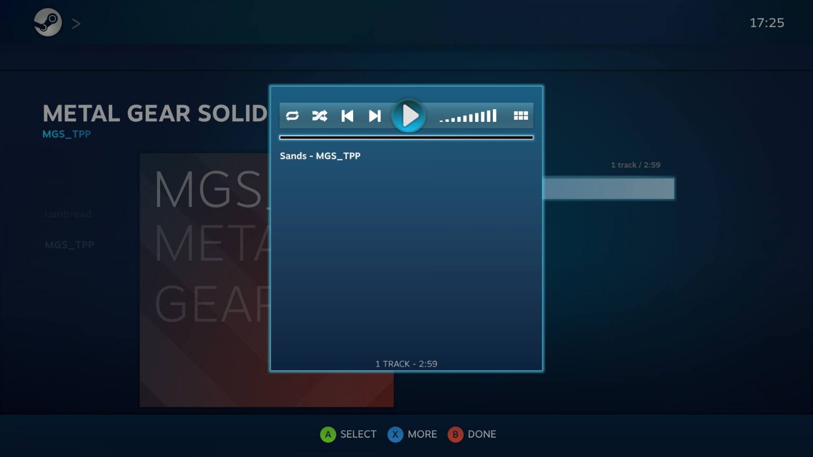 A zenéinket egy zenelejátszó segítségével akár a Steam Overlayből is vezérelhetjük a játékok közben (ezt a Big Picture módon kívül is megtehetjük az Overlayből). Nincs túlbonyolítva, de szerintem tökéletesen megteszi a feladatát.