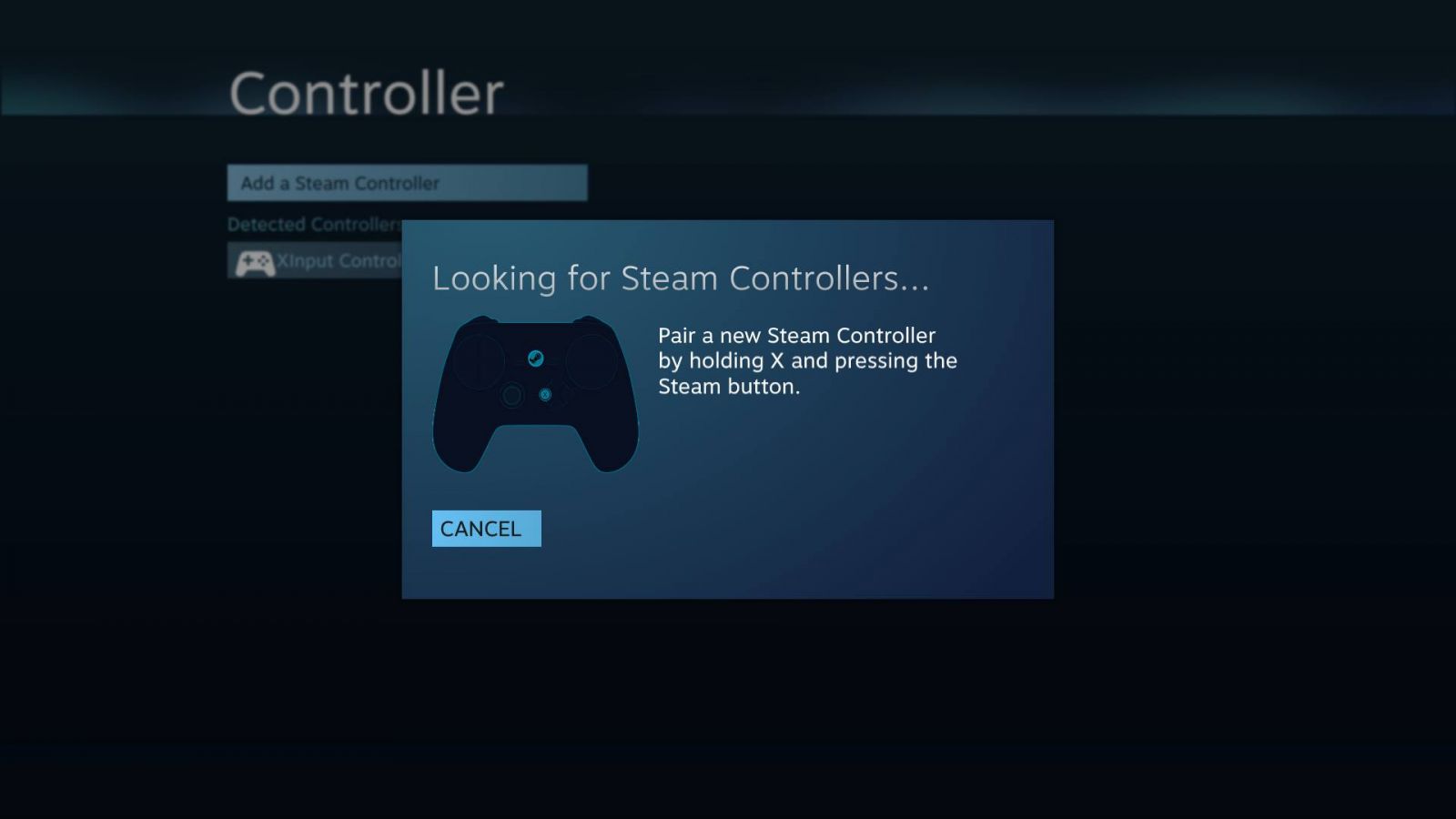 Ugyan még nem érkeztek meg a Steam Controllerek, de a hozzá tartozó rendszer már bekerült az interfészbe. A kontroller párosítása nagyon egyszerű dolog lesz: a Steam és az X gomb lenyomva tartásával azonnal párosítja a gépünkkel a kontrollert és már indulhat is a kezelés személyreszabása.