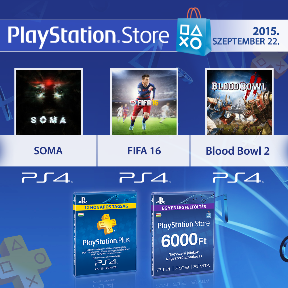 Erős felhozatallal búcsúztatja a Sony a szeptembert. A sportjátékok rajongói a Fifa 16 vagy a fantasyval kevert Blood Bowl 2 izgalmaiba vethetik magukat, míg a rettegés hívei a Soma című alkotással szerezhetnek maguknak hátborzongató perceket.