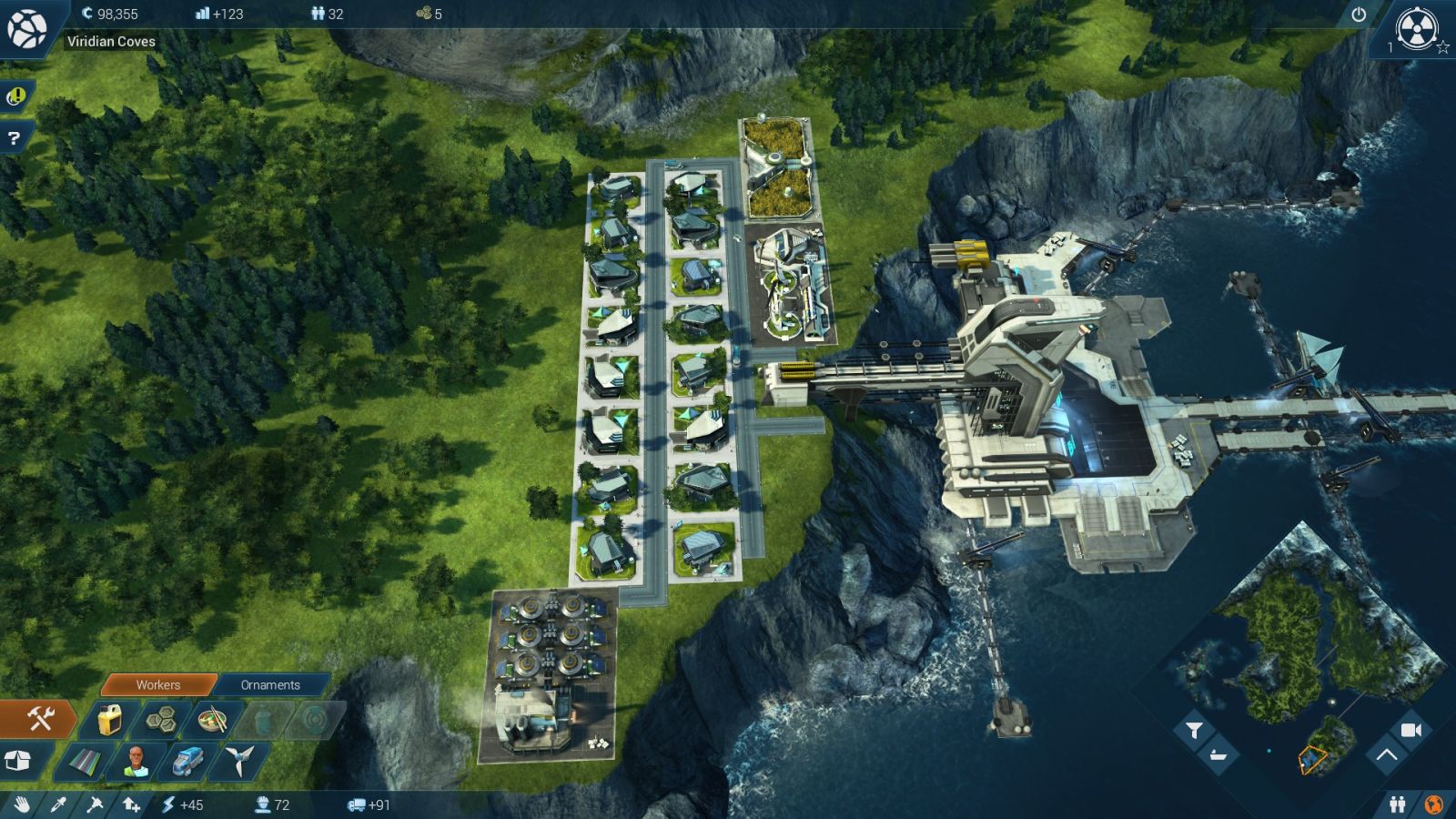 Ezután kapunk egy területet, ahol elkezdhetünk terjeszkedni, munkásokat toborozni és a szükségleteiket kielégíteni. Minél fejlettebb a kolóniánk, annál magasabbak az elvárásaik. Itt jön elő a játék szerintem egyik legerősebb pontja, mégpedig a különböző szektorokon való terjeszkedés. Ezen a zónák nem csak a környezetükben és kinézetükben térnek el, hanem mindegyiknek meg van a sajátos erőforrása, amit ki tud termelni. Például a sarkvidéki területen lévő munkásainknak gyümölcsre van szüksége, de azt nem tudnak ott helyben termelni, ezért kereskedelmi útvonalat kell felállítanunk a mérsékelt övben lévő kolóniánkkal, és a megfelelő nyersanyagot egyik szektorból a másikba átszállítva kielégíthetjük a termeléshez szükséges igényeket.