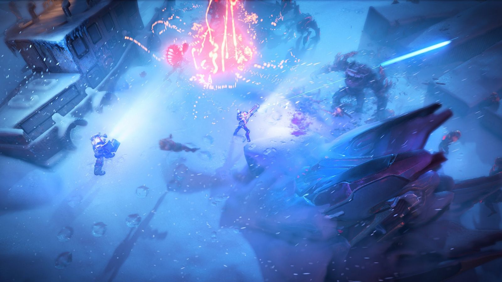 A már sokszor emlegetett sallangmentesség, meg egyszerűsítés egy dologra nem igaz az Alienation-ben. A játéktérre és annak látványvilágára. A Housemarque saját motorja már a Dead Nation esetében is bőszen kapott dicséretet a részletességük ellenére jól kezelt elemek száma és látványos effektjei miatt. Az idegen lények és struktúrák, no meg az energiafegyverek igazán színpompássá teszik az invázó alatt lepusztult, roncsoktól és szélben sodródó szeméttől, hótól és miegymástól amúgy hangulatosan komor helyszíneket. Jó néhány olyan pályaelem akad mindenhol, amit a játékosok ki- vagy felhasználhatnak, átmeneti fedezékként a messze hordó fegyverekkel felszerelt idegenek, vagy épp felrobbantva azokat fegyverként a nagy tömegben támadó „ágyútöltelékek”, a nehezen kiirtható parancsnokok ellen.