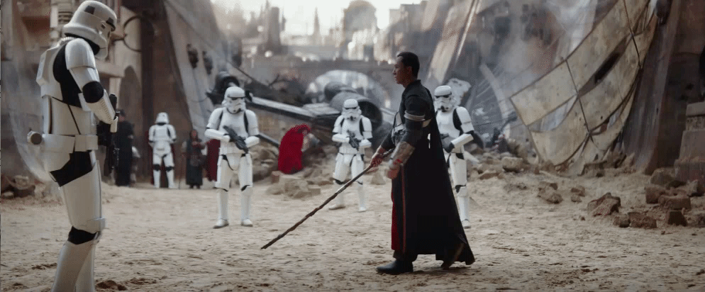 Az egyik legfontosabb és legkiemelkedőbb pozitívuma a filmalkotásnak a nagybetűs HANGULAT. Iszonyatosan jól sikerült a látványvilág megalkotása, frenetikusak a főhajtások a nagy klasszikus epizódok előtt, remekbe szabott a díszlet, amely sokszor ugyanazt a hatást kelti, mint a régi modellek a középső három résznél, és alapjában véve a karakterek is jól el lettek találva (a vicceskedő átprogramozott birodalmi robot például telitalálat, és a helyenként Chuck Norrisként viselkedő, amúgy meg inkább egy bölcs buddhista szerzetesre hajazó Chirrut is üdítően hat a vásznon). A hihetetlen látványorgiát lehengerlő akciójelenetek tetézik, amelyek legalább annyira grandiózusak, mint a filmtörténet kiemelkedő klasszikusainak esetében, és nem csupán vörös filccel aláhúzzák, de még szövegkiemelővel is nyomatékosítják, hogy ezt a filmet moziban kell megnézni, és hogy a teljes élményt otthon, a kanapédban ülve nem kapod meg.