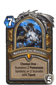 Druid: Kijátszásakor választania kell, hogy 2 mérgező pókot vagy 2 tauntos szkarabeuszt idéz meg