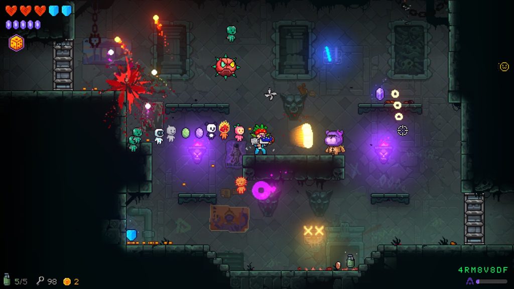 A fegyvereink az Enter the Gungeon-höz hasonlóan nagyon elvetemültek, és itt még egy csavarral tovább is viszik a dolgot. Felvett tárgyakkal lényegében a végtelenségig upgradelhetjük őket. Egyértelműen a legerősebb része a játéknak a gunplay. Szinte nincs két run, ahol ugyanaz a felvett fegyver ugyanúgy fog viselkedni. Egyik kör alatt például a fegyver 5 lövedéket lő egy helyett, a másikban pedig robbanó lövedékeket lő és mellé olyan gyorsan, hogy szinte csak egy fénysugár látszik a lövedékek helyén. Néha sajnos emiatt a random faktor miatt úgy érezhetjük halálunkkor, hogy ez a kör sajna nem rajtunk múlt. Többször jártam úgy, hogy szinte lehetetlen küldetés volt a felszedett tárgyaimmal eljutni a bossig.